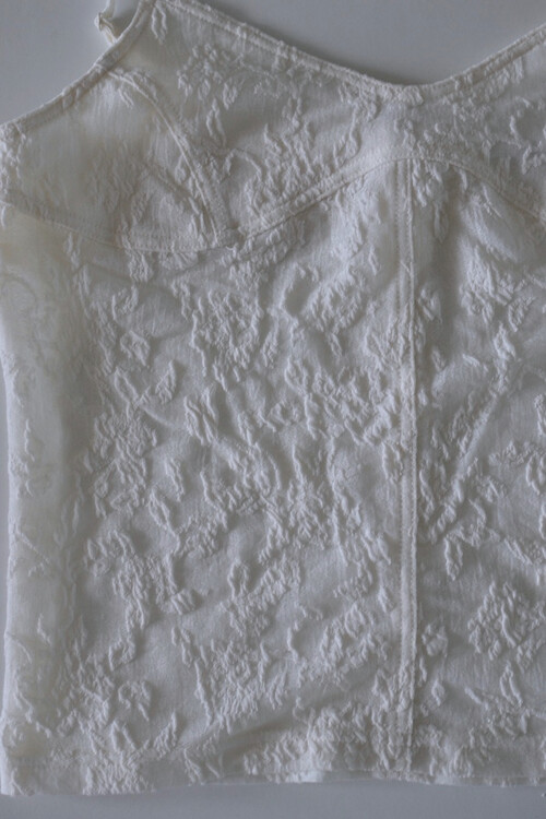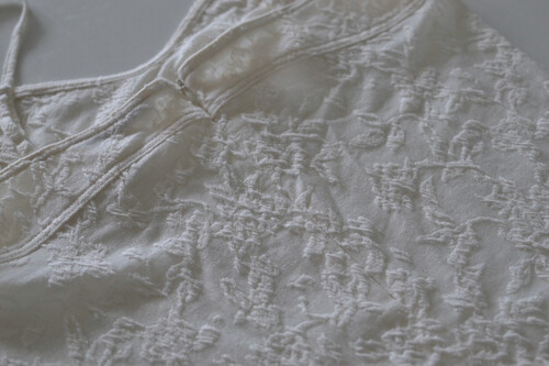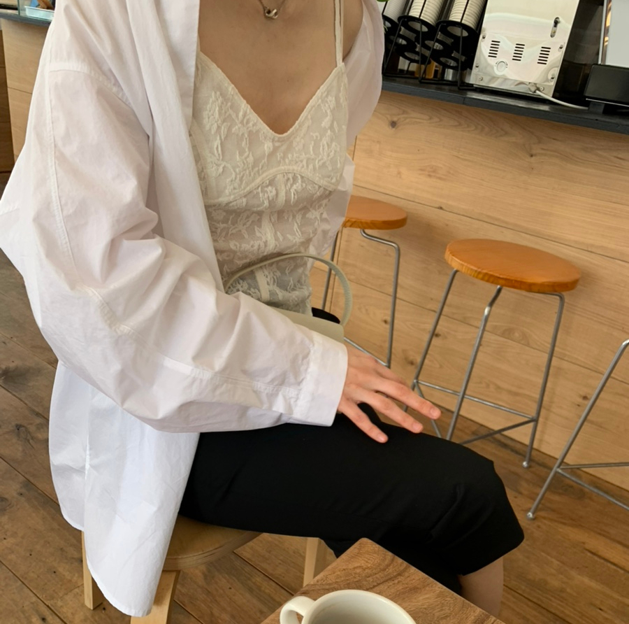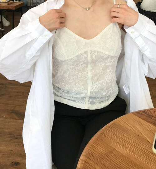 레이스 소재 특유의 은은한 비침과 섬세한 플라워 패턴이 매력적인 슬리브리스입니다.