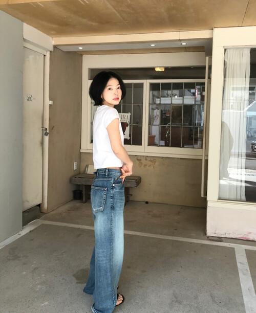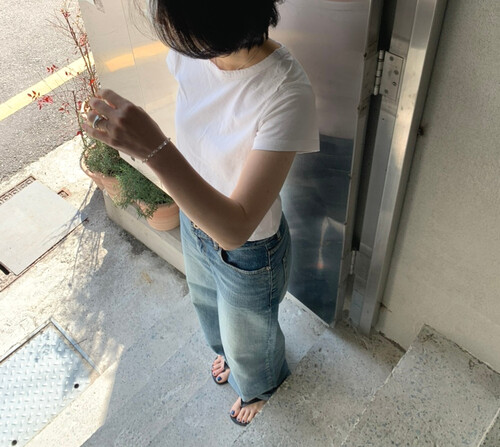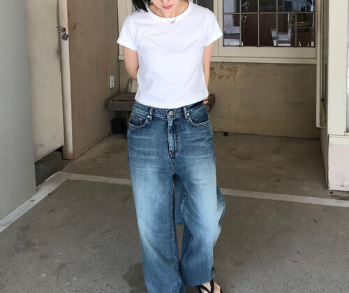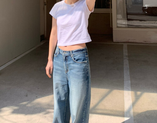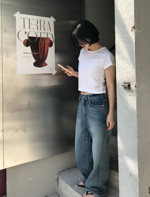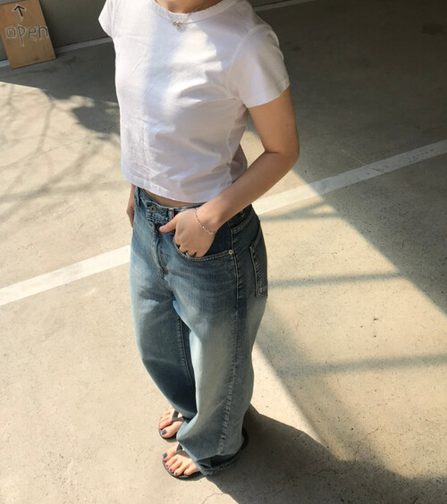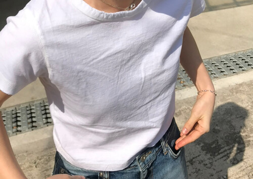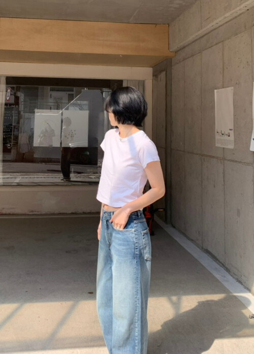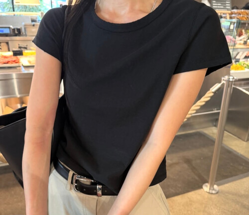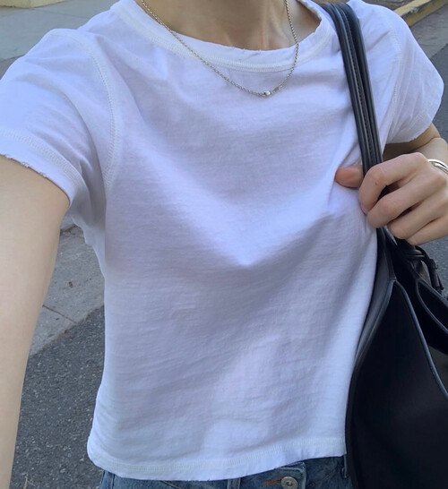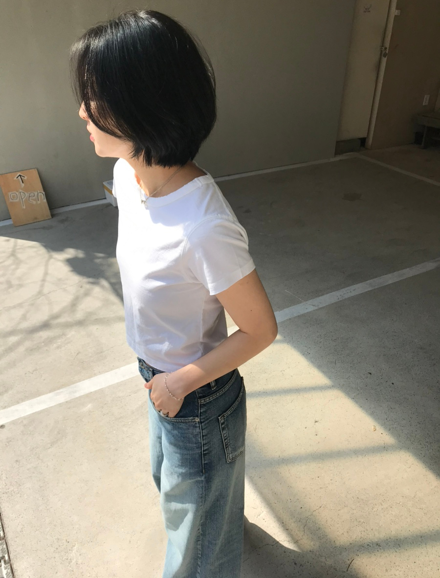 세미 크롭 기장의 반팔 티셔츠로, 배꼽을 자연스럽게 가려주는 길이감으로 다양한 하이웨이스트 하의와 안정감 있게 매치됩니다.