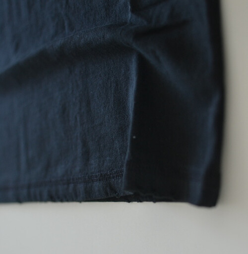 넥 라인, 소매, 밑단에는 frayed edge 디테일을 더해 빈티지하면서도 캐주얼한 무드를 살렸으며, 암홀 라인은 오버로크 스티치 디테일로 마감되어 구조적인 포인트를 제공합니다.