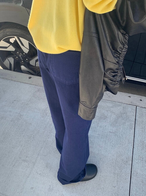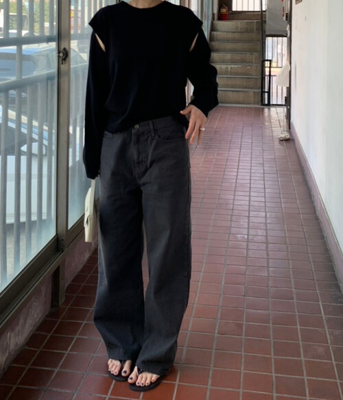 허리부터 밑단까지 자연스럽게 떨어지는 스트레이트 실루엣으로 다리 라인이 길고 슬림 해 보이며, 과하지 않은 스트레이트 핏으로 편안하면서도 세련된 분위기를 연출해 줍니다.