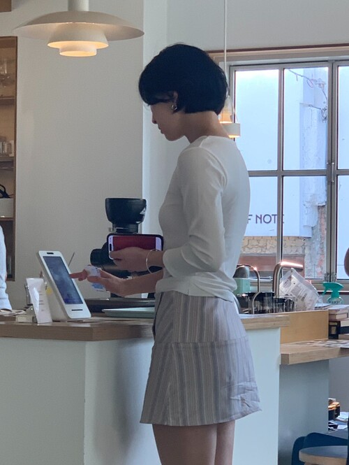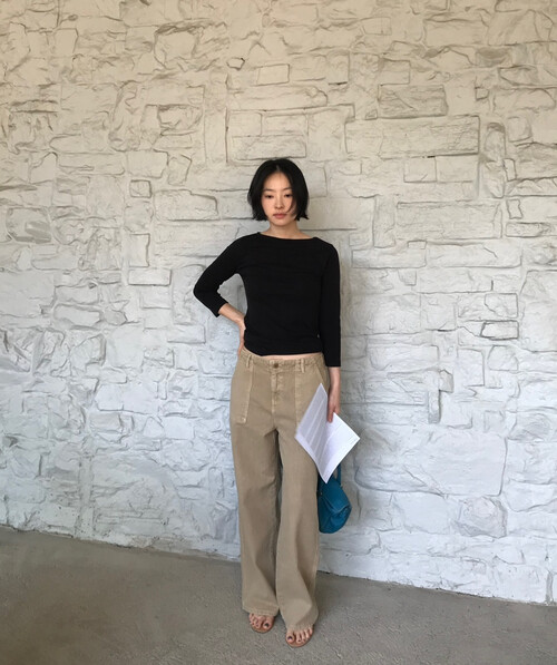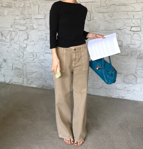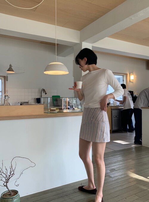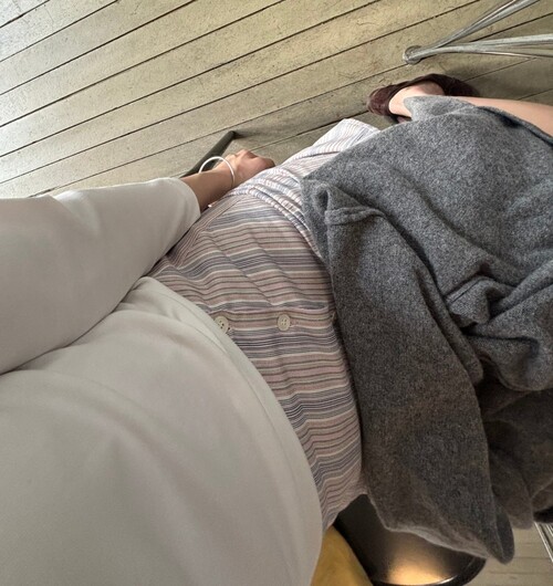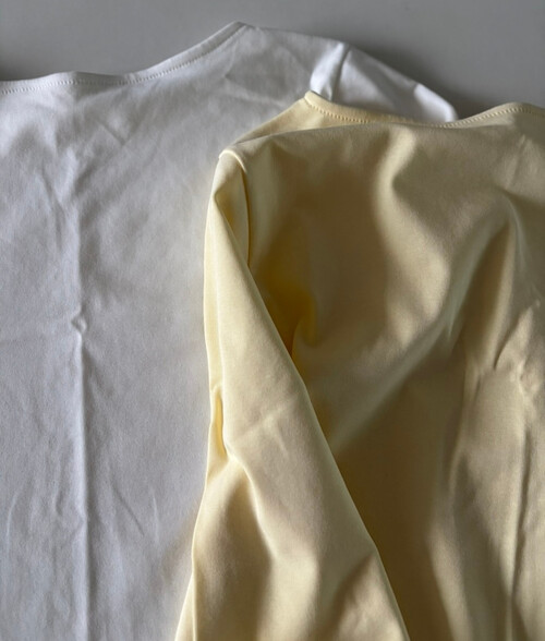 7부 소매 기장이 팔 라인을 정돈된 느낌이에요! 완전 면이 아니라 스판이 있어서 원하는 대로 기장 조절이 가능합니다.