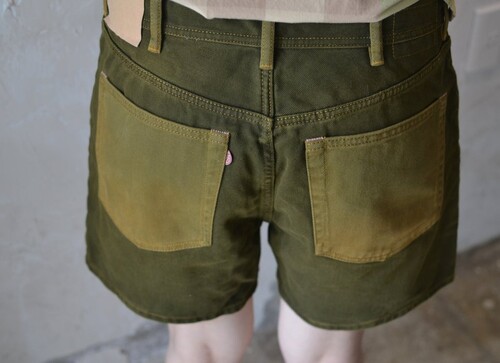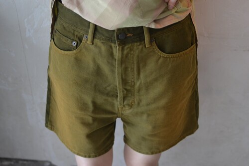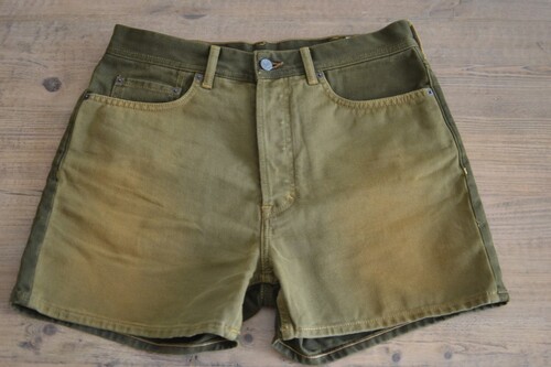 그라데이션이 살아있는 올리브 컬러 워싱과 안쪽 아트 프린트 디테일이 특징입니다. 탄탄한 이탈리아산 데님 원단에 클래식한 5포켓 디자인 쇼츠입니다. 전체적인 상태 매우 양호하며, 여름 시즌 단독 착용으로 활용도 높은 제품입니다. 남성용이라 사이즈가 커요! 상세 사이즈 확인 부탁드립니다 :)