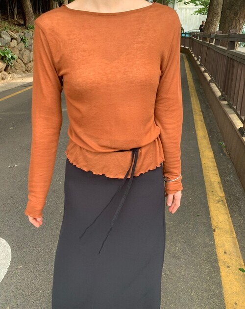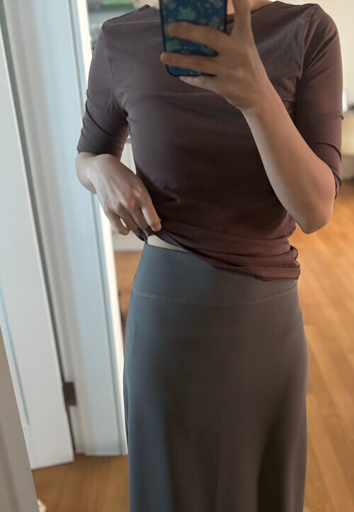 유연하고 가벼운 저지 소재가 바디 라인을 자연스럽게 따라 흐르며, 과하게 붙지 않아 체형을 정돈된 느낌이에요.