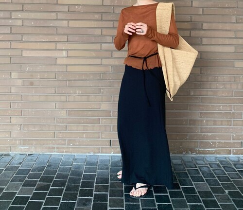 가볍게 흐르는 실루엣이 매력적인 저지 롱 스커트입니다.