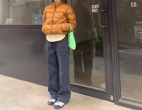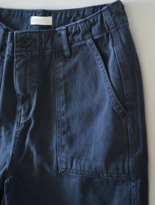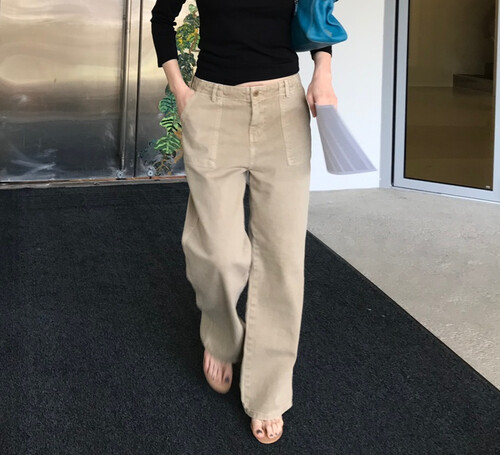 부드럽게 워싱 된 코튼 원단으로 자연스럽게 떨어지며, 허리부터 스트레이트로 내려오는 스탠다드 핏이 다리 라인을 길고 곧게 연출합니다.