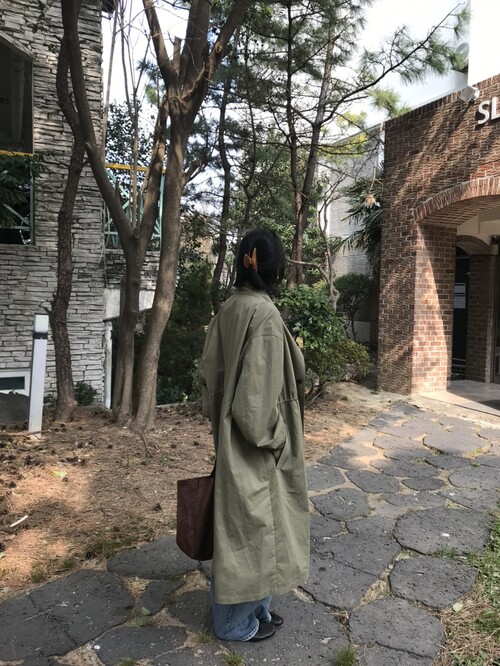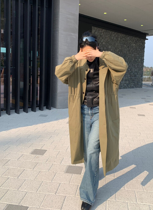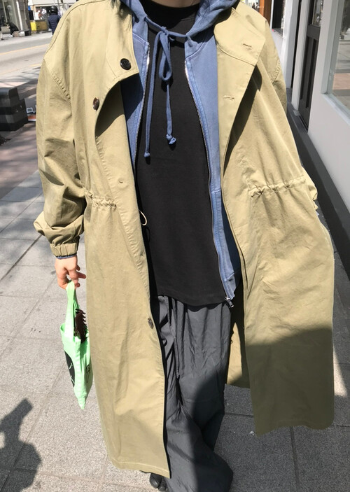 얇은 코튼 소재의 트렌치코트입니다.