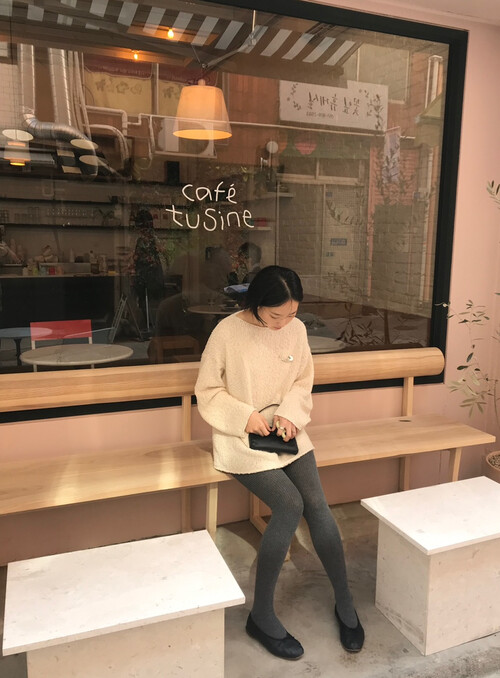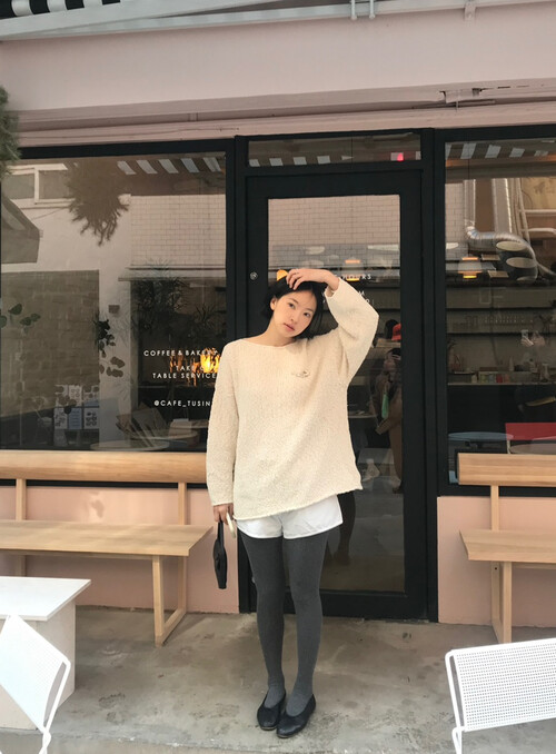힙을 충분히 덮는 안정적인 기장감과 보트넥이 포인트입니다:)