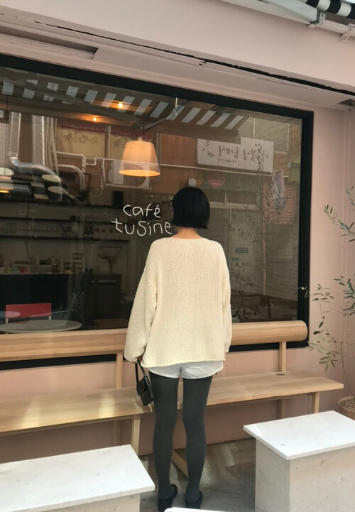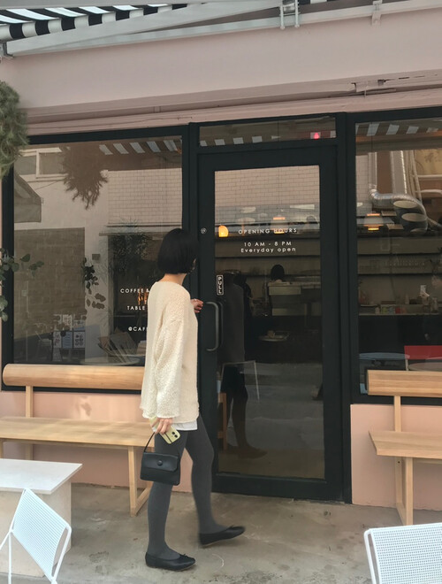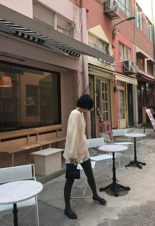 전체적으로 여유 있는 핏과 드롭 숄더 라인이 어우러져 여리여리하면서도 우아한 분위기를 완성합니다.