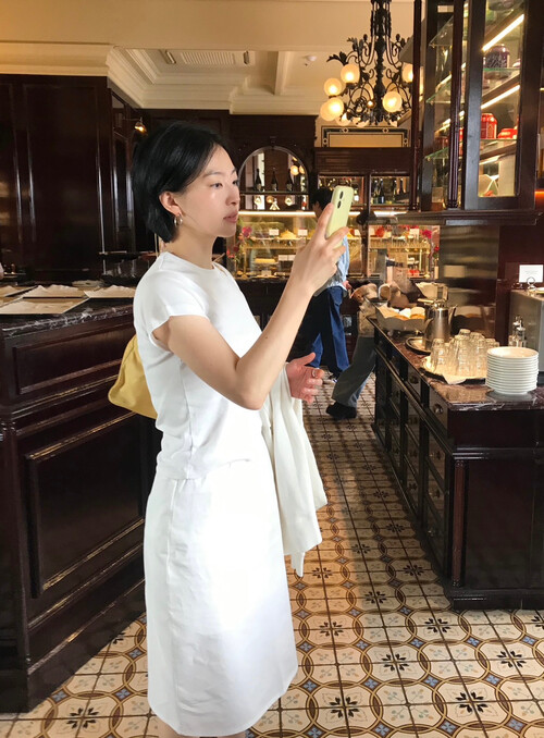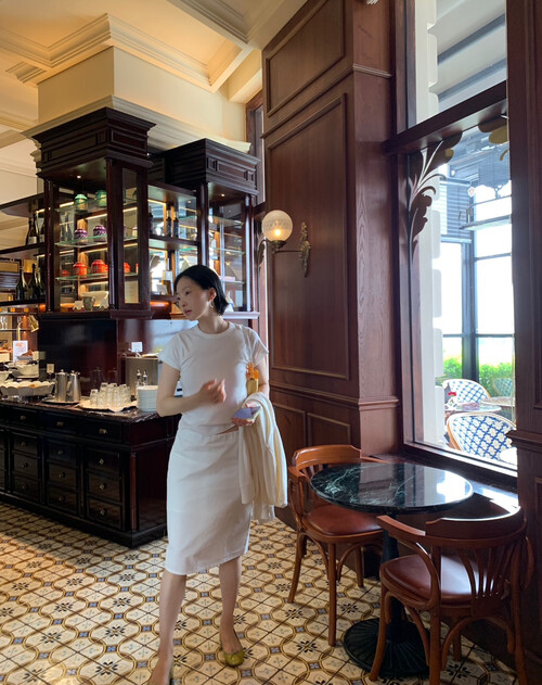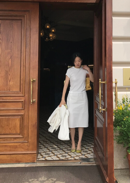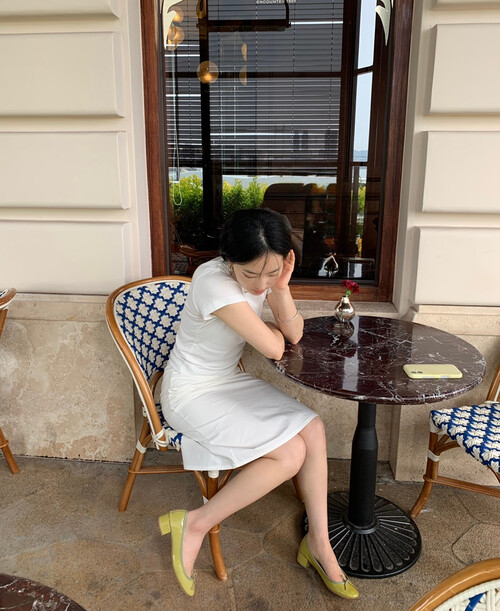 미디 기장감으로 부담 없이 우아하게 입기 좋아요.