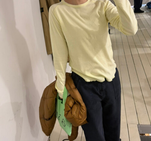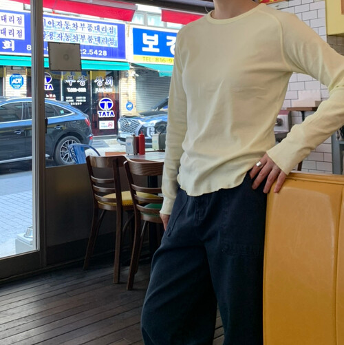 래글런 라인으로 살짝 여유 있는 핏, 여유 있는 기장, 단독으로나 이너로 입어도