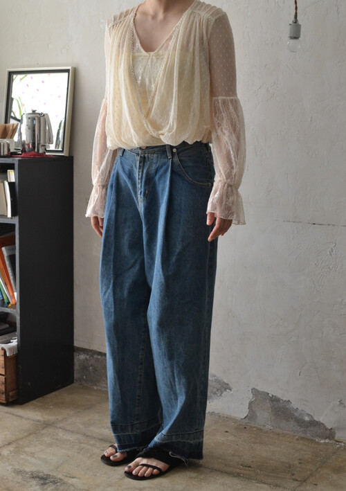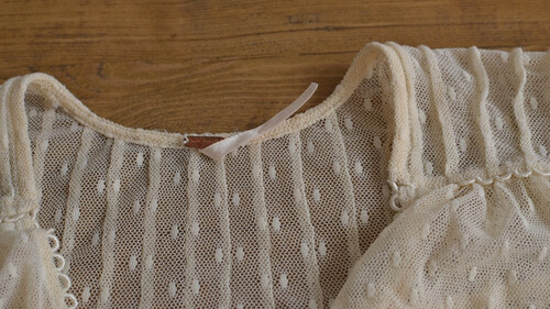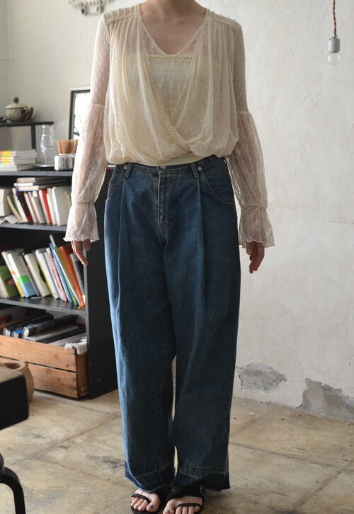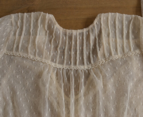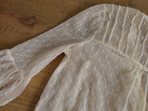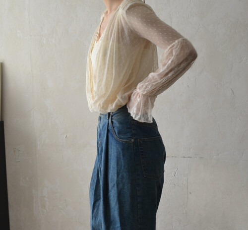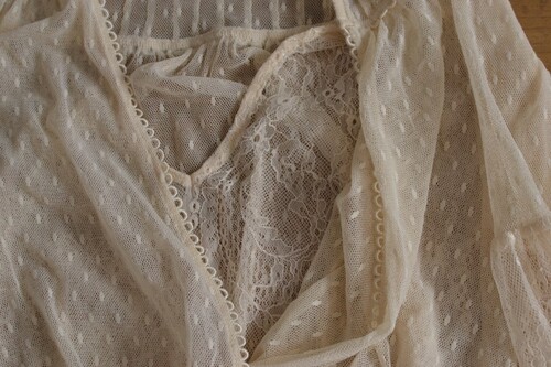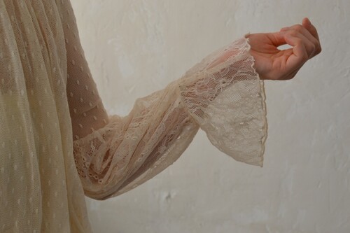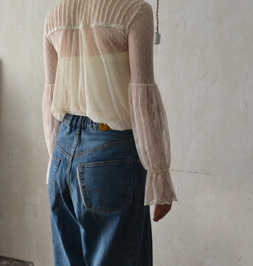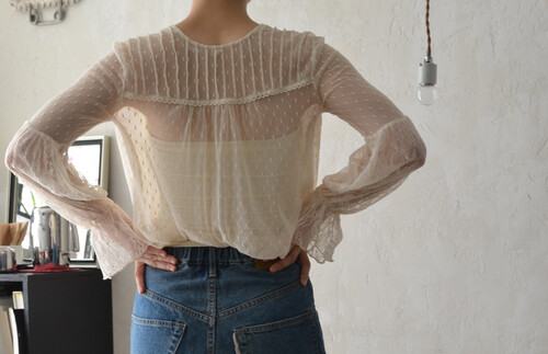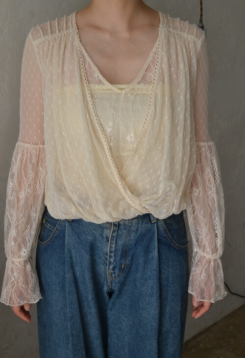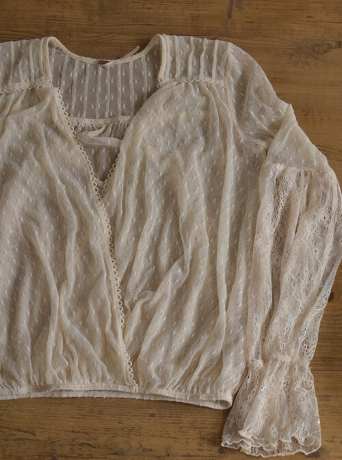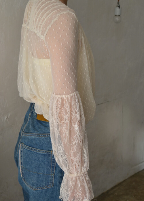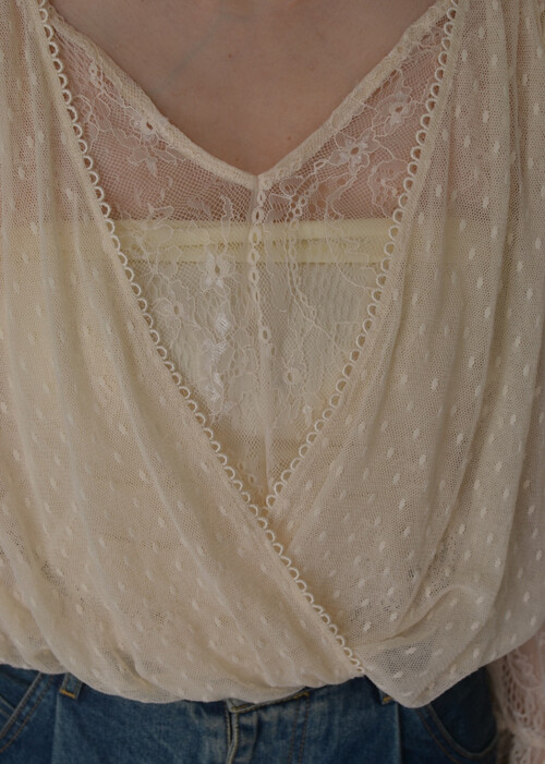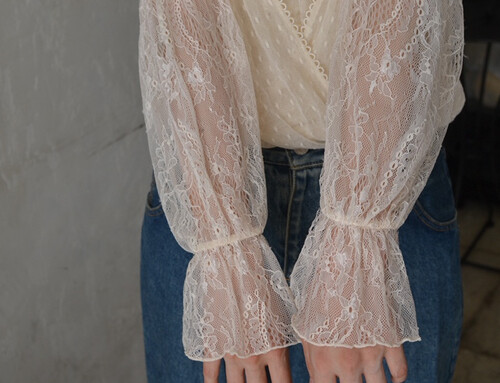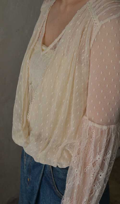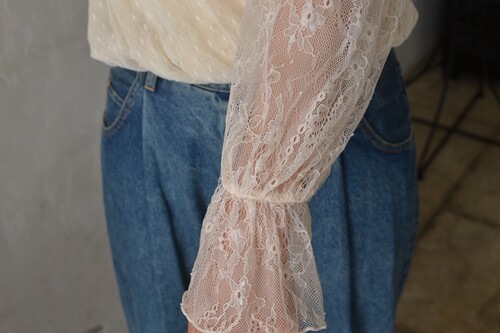 여러 종류의 레이스로 레이어드 되어있는 블라우스입니다