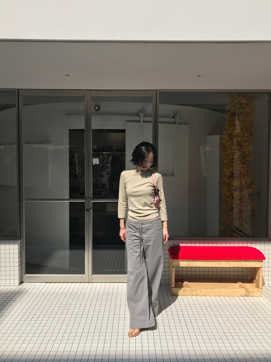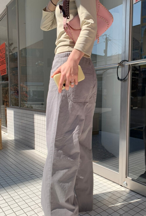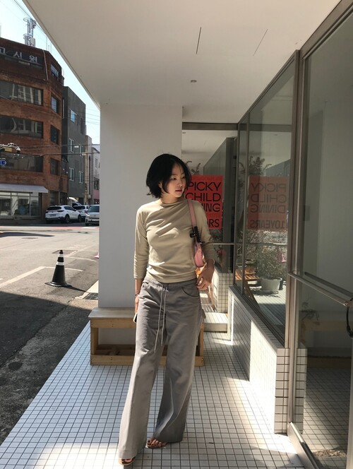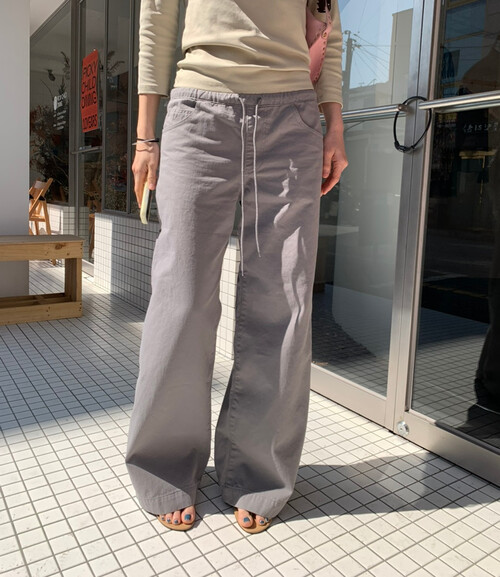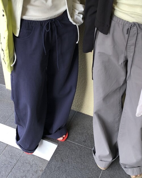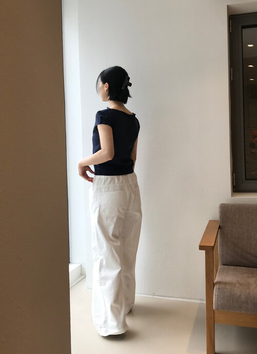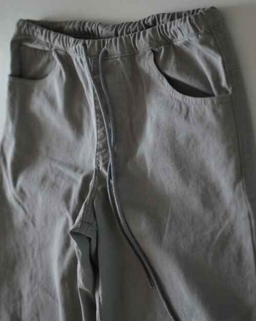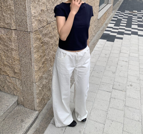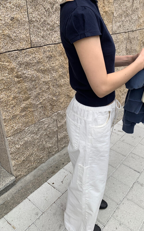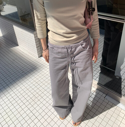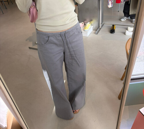 허리는 리본으로 귀엽게 완성되었어요. 단순하지만 고급스러운 분위기의 팬츠입니다.