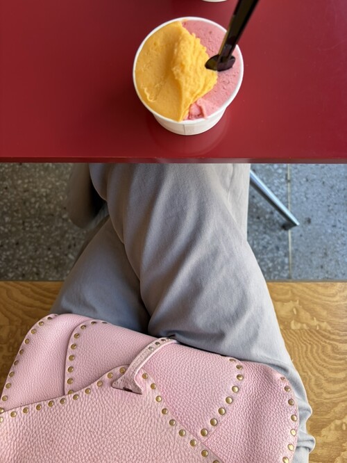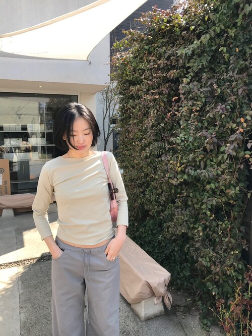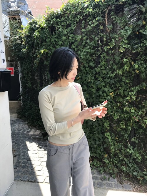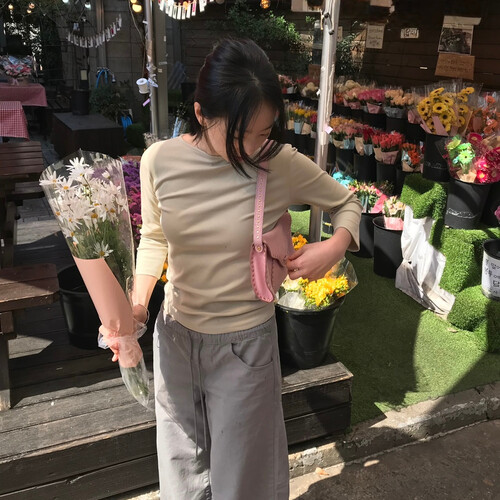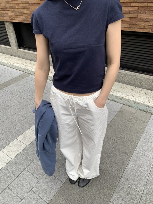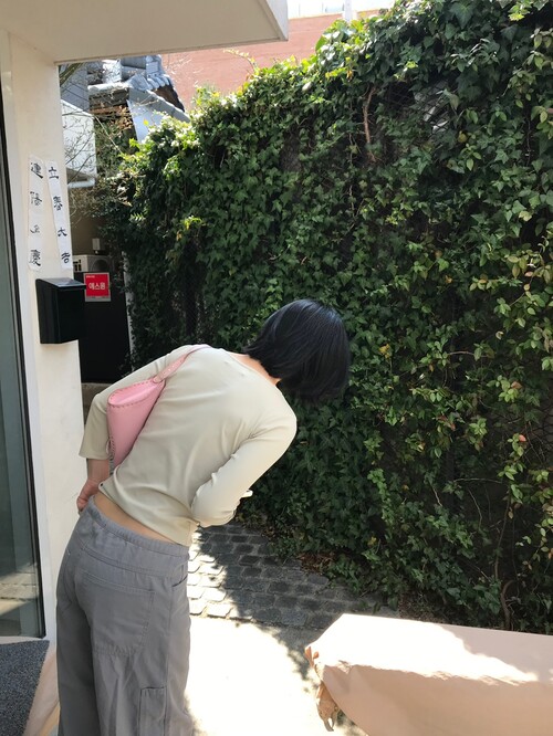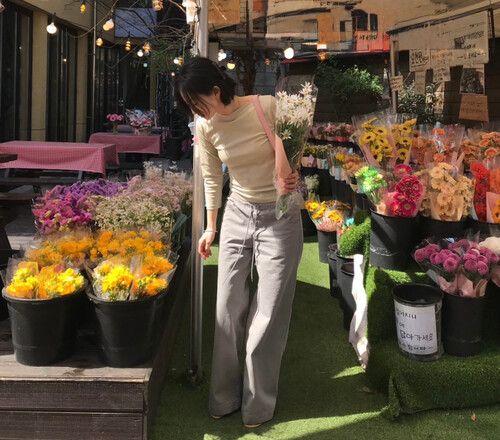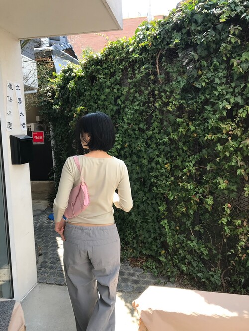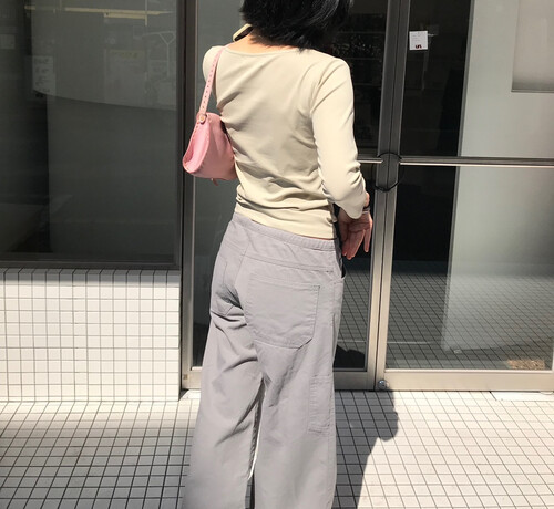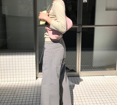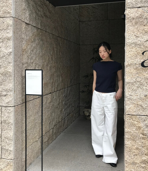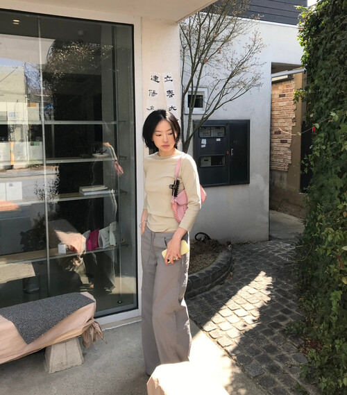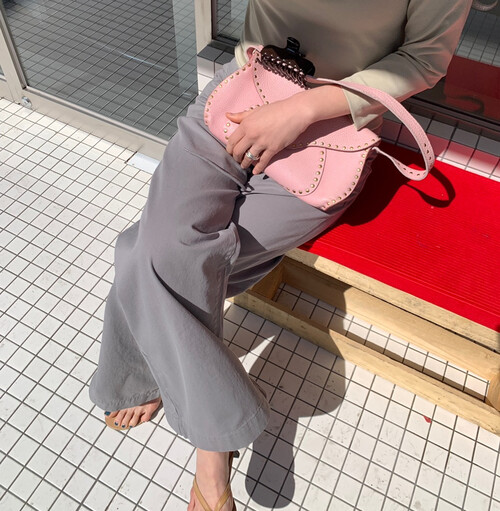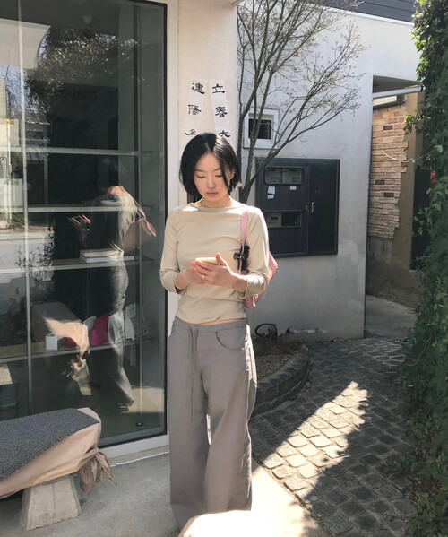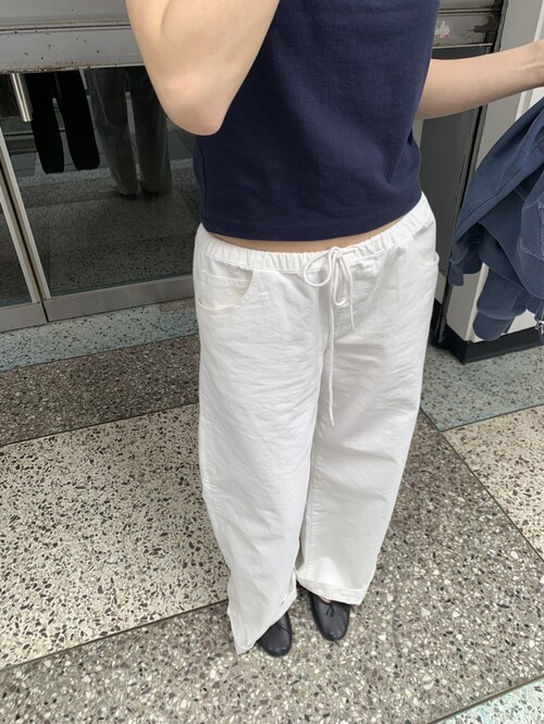 허리는 리본으로 귀엽게 완성되었어요. 단순하지만 고급스러운 분위기의 팬츠입니다.